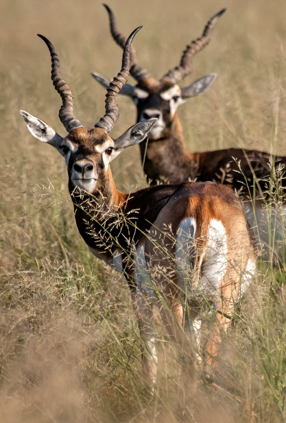 Blackbuck are prized for their unique spiral horns, making trophy evaluation a key part of the hunt.